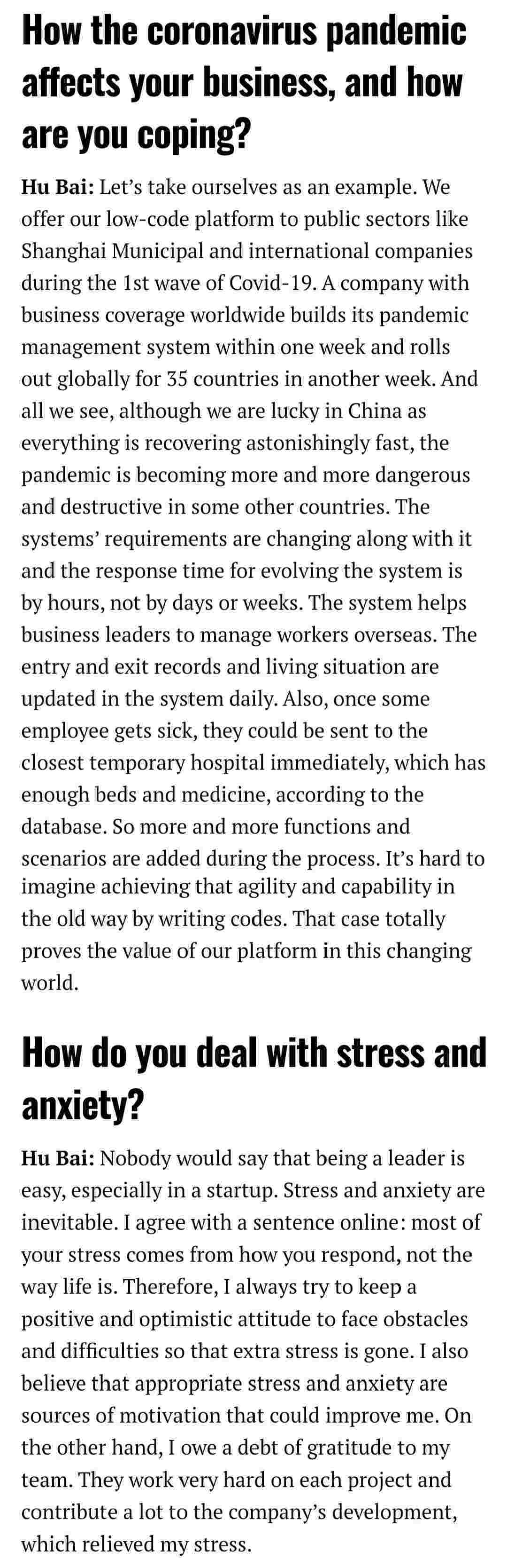2021年年初,,,,爱湃斯科技CEO胡柏受邀接受法媒Startup.info的专访,,,与Startup info的读者分享了自己的创业经历、、以及低代码平台沃钱包的创新之处。。。